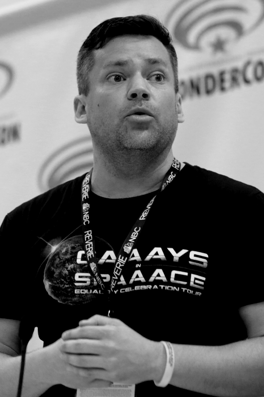 Gays In Space hosts their first Galactic Diversity & Inclusion Convention in Philadelphia, PA. Saturday night of the event Dan Deevy announces a “surprise” wedding on their special main stage which was a 5-10 minute walk from the main D&I Con exhibitor area. This special main stage had elaborate scaffolding and lighting because Dan wanted it for his wedding.