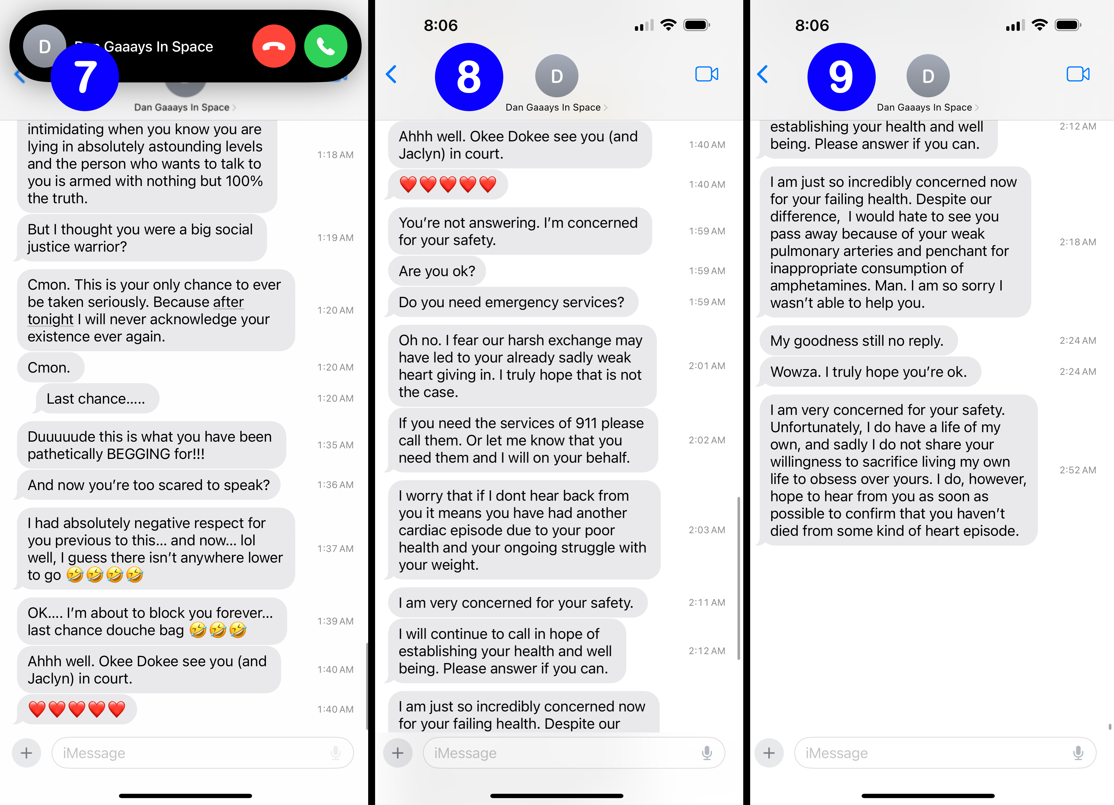 Frequent viewers of this website may remember in 2024 when Dan Deevy called Egan 140 times (see April 25th, 2024), leaving 95 text messages and 30 voicemails, so this type of unhinged behavior is not unexpected.