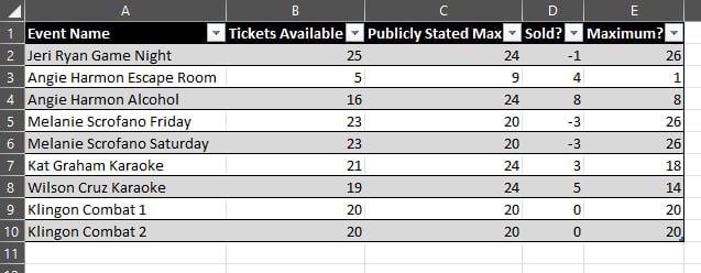Roughly 20 tickets for Away Missions had sold in total, out of 185 that were stated with each celebrity guest’s announcement. Some of these “sold” we believe are carried over from Kate Mulgrew’s cancellation in March. Both George Takei and Kate Mulgrew canceled on DNI Con this year.